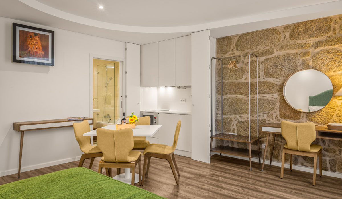 A big room illuminated by skylights and windows, one of which overlooks the River Douro and a balcony at the back (roofs of Port wine cellars). Capacity for 2+2+2 pax.